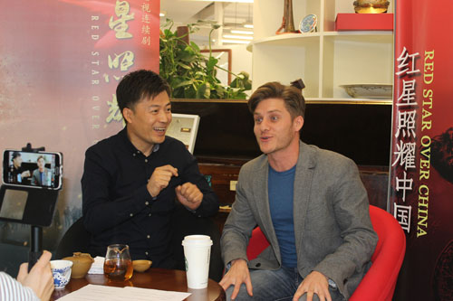 由于拍攝成本的巨大,作為制片人,白小白巴不得將6000萬(wàn)的每一分都掰開(kāi)兩半來(lái)花。著名演員蔡國(guó)慶、劉濤、黃海冰、趙文卓、孫茜等源于對(duì)長(zhǎng)征精神的敬仰,主動(dòng)愿意減少自己的片酬友情出演,使更多的資金投入到拍攝和制作中,這也是讓白小白和導(dǎo)演趙東陽(yáng)最為感動(dòng)的。該劇從今年1月17日在上海開(kāi)機(jī),輾轉(zhuǎn)寧波、杭州、象山、北京、綏德、安塞、延安等斯諾去過(guò)的地方實(shí)地取景,還原歷史,歷時(shí)四個(gè)多月于5月27日殺青。在拍攝過(guò)程中,一直奔波在各地拍攝現(xiàn)場(chǎng)的白小白不得不將一歲多的孩子帶在身邊做兼職媽媽。她的精神感動(dòng)了劇組所有演職人員,大家常常熬夜加班,甚至帶病工作都毫無(wú)怨言。在延安市安塞縣(現(xiàn)安塞區(qū))一山頂需要拍攝500余名工農(nóng)紅軍打腰鼓的場(chǎng)景,十分壯觀,白小白和趙東陽(yáng)積極與當(dāng)?shù)卣畢f(xié)調(diào)幫忙,延安市政府、安塞縣政府立即召開(kāi)協(xié)調(diào)會(huì)議連夜調(diào)動(dòng)機(jī)械拓寬山路、運(yùn)送演職人員,大力支持劇組的拍攝。這個(gè)在電視劇中呈現(xiàn)的30多秒的畫面,光拍攝就用了整整一天的時(shí)間。在《紅星照耀中國(guó)》著作中,作者斯諾這樣寫到,“這是我見(jiàn)過(guò)的最龐大的鼓樂(lè)隊(duì),在黃土高原上豪邁、灑脫、粗獷,這是民族精神的展現(xiàn)?!睂?dǎo)演趙東陽(yáng)說(shuō):“這是斯諾眼中工農(nóng)紅軍的壯舉,我們?cè)谘堇[中一定得將它表現(xiàn)的淋漓盡致?!?/p>
