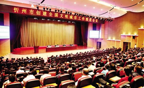 圖為忻州市創(chuàng)建全國(guó)文明城市工作推進(jìn)會(huì)議會(huì)場(chǎng)。趙菁