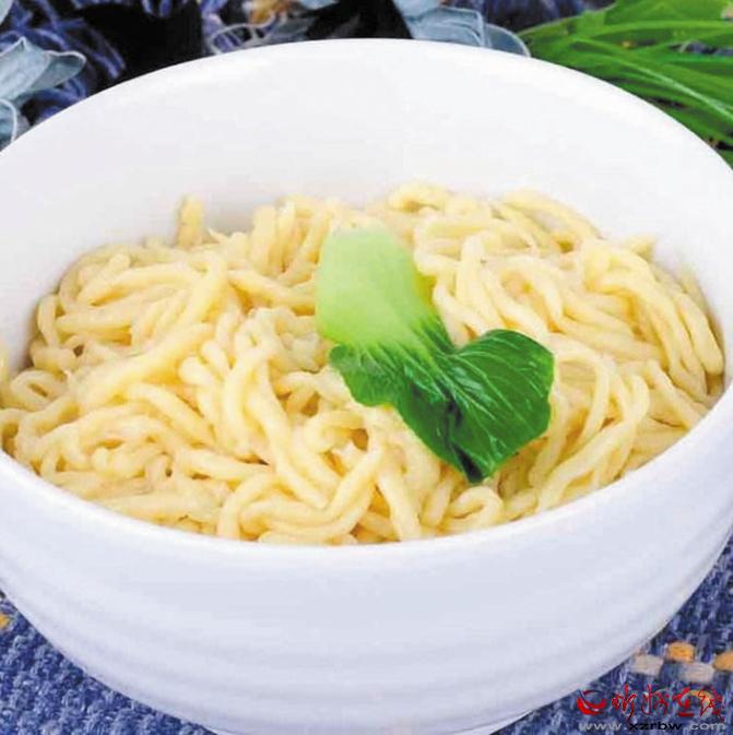 豆面稍加白面制成的豆面河撈是五寨當(dāng)?shù)氐奶厣s糧主食,經(jīng)特制的河撈床下到鍋里,待面壓到一定長度,截?cái)嗝鏃l,煮熟后配上各種澆頭,吃著筋滑利口。(張志遠(yuǎn))