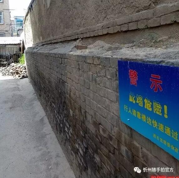 正值雨季來臨,位于繁峙縣舊法院小區(qū)西墻年久失修,多處開裂傾斜,墻體下部已倒塌,整扇土墻隨時(shí)都有崩塌的危險(xiǎn)。危墻下二米寬的通道是宿舍住戶必經(jīng)之路。人們每天走到此處都會(huì)擔(dān)驚受怕,危墻嚴(yán)重危及二十多家住戶人員的生命安全。院墻隸屬于墻西住戶,墻體傾斜于舊法院宿舍這面,多次找主人商談,一直無人理睬。繁峙縣西石龍居委會(huì)只是貼了一個(gè)小提示,就沒有了下文,試問這樣的事情誰來管,等到出了大事,該找誰?希望有關(guān)部門和領(lǐng)導(dǎo)能夠引起重視早做處理,防患于未然!