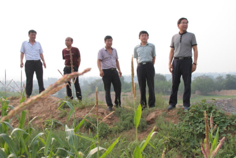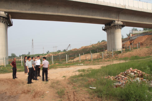 7月29日烈日炎炎,忻州氣溫高達30多度,下午16時許,忻府區(qū)區(qū)長趙志偉,副區(qū)長寧康平,忻府區(qū)國土資源局局長白蕾,解原鄉(xiāng)黨委書記丁國倉,鄉(xiāng)長王萬榮和相關部門負責人,帶著忻州市委、市政府,忻府區(qū)委、區(qū)政府對東社村村民的關懷,趕赴解原鄉(xiāng)東社村實地了解情況。區(qū)長趙志偉一行人驅車直奔現(xiàn)場,徒步來到村東南角高鐵架空橋下,認真察看高鐵架空橋下積水形成灘涂地段和防洪渠現(xiàn)狀后,漫步爬坡而上,走到村東南土方堆放處神臺溝(地名)。親自爬上高約7、8米的土堆,沿土堆一直走到源頭察看了積水情況,經過對現(xiàn)場地形以及土堆源頭積水情況的細致調研,一行人汗流夾背地返回村口,連口水也來不急喝就開始認真地分析問題。
