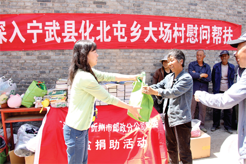 本報(bào)訊 在“ 七一”建黨節(jié)到來(lái)之際,忻州郵政分公司黨委選派部分黨員志愿者、職工代表奔赴寧武縣化北屯鄉(xiāng)大場(chǎng)村開(kāi)展獻(xiàn)愛(ài)心幫扶捐助活動(dòng),將愛(ài)心衣物384 件、書(shū)法用品60 盒、兒童用品20 件、各類(lèi)書(shū)籍161 冊(cè)、現(xiàn)金1490 元通過(guò)鄉(xiāng)扶貧辦移交給該村村委會(huì)。村民們看到送來(lái)的捐助物資,都很感動(dòng),心里覺(jué)得很溫暖。