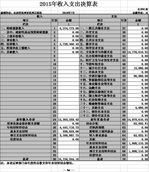 忻州日?qǐng)?bào)社2015年度部門決算