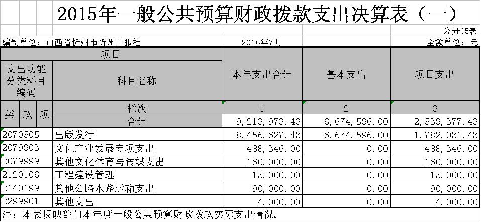 忻州日?qǐng)?bào)社2015年度部門決算