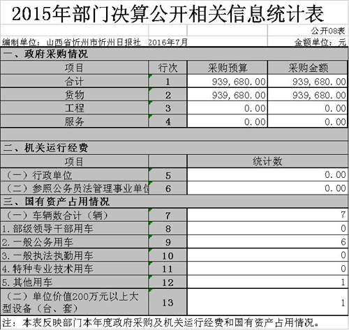 8、部門決算公開相關(guān)信息統(tǒng)計(jì)表
