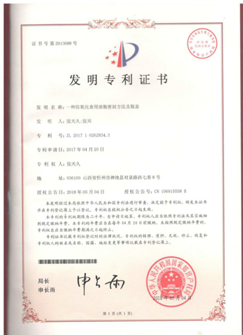 發(fā)明者張興父子從2010年創(chuàng)辦山西省神池縣糧油機械研究所以來,共獲國家專利24,其中發(fā)明4項。“食用油抗氧化包裝”是最近的一項科研成果。張興告訴記者,為了防止氧化,市面上的食用油絕大多數(shù)采用添加抗氧化劑,同時使用小包裝。而神池胡油,從不添加抗氧化劑。實驗證明,零星食用不出一個月氧化值就會超過標準,日久愈甚。使用這個新發(fā)明的食用油包裝,存儲和食用期達到2年之久,氧化值為5.5,仍在GB/T5538標準≤6范圍之內(nèi)。