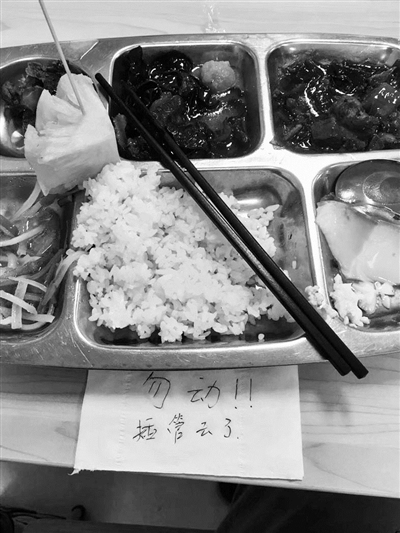 之所以要選擇這樣的方式,他解釋,因?yàn)楫?dāng)時(shí)餐廳里沒(méi)有其他同科同事,而且麻煩他人一直守著自己的餐盤也不可能,所以就希望留下紙條提示食堂工作人員不要收他的餐盤。而在去年,欒遠(yuǎn)航就曾遇到過(guò)一次臨時(shí)離開(kāi),餐盤被收走的尷尬?!昂髞?lái)插管很順利,差不多20分鐘我就回來(lái)了,餐盤也沒(méi)被收走?!?欒遠(yuǎn)航說(shuō)。
