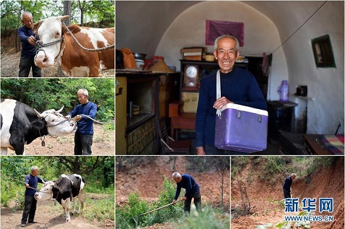 曹晉忠,男,1949年出生,山西省長治市武鄉(xiāng)縣鋪上村人。曹晉忠是村里的動物防疫員,自己種了4畝玉米、2畝小米。因?yàn)槠拮映D昱P病在床,曹晉忠一家是該村的精準(zhǔn)扶貧對象。曹晉忠說,醫(yī)護(hù)人員經(jīng)常上門進(jìn)行健康狀況隨訪,駐村工作隊也常來家里幫忙,現(xiàn)在看病不發(fā)愁,干活有人幫,生活挺好的。 右上:曹晉忠肖像;左上、左中、左下:曹晉忠在給村里的牛做檢查;下中、下右:曹晉忠在地里干農(nóng)活(拼版照片,6月12日攝)。 地處晉東南的山西省長治市,位于由太行山、太岳山環(huán)繞而成的上黨盆地中。在群山中、崖壁上,許多村莊自然條件惡劣,基礎(chǔ)設(shè)施落后,脫貧致富是大山深處人們的迫切心愿。 近年來,一場場脫貧攻堅戰(zhàn),在一個個深山村打響。政府全力探索脫貧路徑的同時,山區(qū)百姓因地制宜,靠自己的雙手和智慧走上致富路,交出了一份扎實(shí)的脫貧答卷。 記者在太行山、太岳山一路尋訪,記錄下多位70歲老人的生活。這些共和國的同齡人,親歷了山鄉(xiāng)的巨變,見證著長治山區(qū)脫貧攻堅偉大工程的一步步推進(jìn)。 新華社記者 詹彥 攝