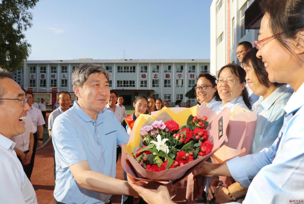 每到一處,朱曉東都向教師們致以節(jié)日問(wèn)候。長(zhǎng)征小學(xué)西校區(qū)是一所高標(biāo)準(zhǔn)規(guī)劃、高水平建設(shè)的新建學(xué)校,今年秋季學(xué)期投入使用。朱曉東察看電子圖書(shū)閱覽等教學(xué)新設(shè)施,了解學(xué)校開(kāi)設(shè)的書(shū)法、歌唱、手工、足球、乒乓球、跆拳道、機(jī)器人組裝等特色教育課程,隨機(jī)檢查學(xué)生飲用水機(jī)具,向從基層選拔聘用的優(yōu)秀教師代表贈(zèng)送書(shū)籍,勉勵(lì)大家珍惜崗位,肩負(fù)起時(shí)代賦予的重任,全心全意培養(yǎng)好人才。具有40多年歷史的忻州六中辦學(xué)底蘊(yùn)厚重,近年來(lái)與時(shí)俱進(jìn)提升教學(xué)能力。朱曉東實(shí)地了解學(xué)校發(fā)展情況后,一一為教師代表獻(xiàn)上鮮花,感謝大家辛勤付出,希望學(xué)校越辦越好,讓孩子們?cè)趯W(xué)校有更多收獲。忻州高級(jí)中學(xué)教學(xué)設(shè)施先進(jìn),教師隊(duì)伍素質(zhì)高、經(jīng)驗(yàn)豐富,今年學(xué)校畢業(yè)班高考再次取得好成績(jī)。朱曉東詳細(xì)了解學(xué)校歷史和往屆學(xué)生成就,鼓勵(lì)教師們放長(zhǎng)眼光,對(duì)照更高標(biāo)準(zhǔn)繼續(xù)努力,為忻州增光添彩。