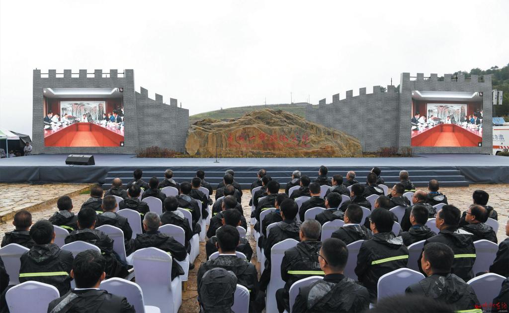 老牛灣長城一號旅游公路“0Km”標(biāo)志文化驛站啟用活動現(xiàn)場。劉紀(jì)森 攝