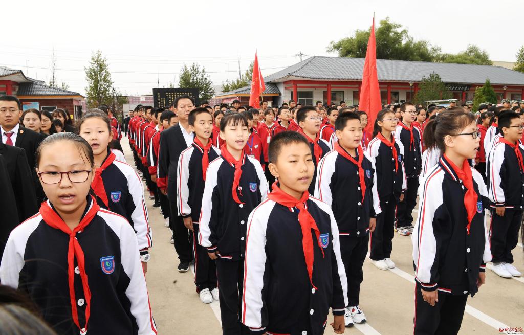 少先隊員合唱《我們是共產(chǎn)主義接班人》。劉紀(jì)森 攝 公祭活動開始后,奏響《義勇軍進(jìn)行曲》,高唱《中華人民共和國國歌》;國歌唱畢,全場肅立,向為中國人民解放事業(yè)和共和國建設(shè)事業(yè)英勇獻(xiàn)身的烈士默哀。少先隊員獻(xiàn)唱《我們是共產(chǎn)主義接班人》,表達(dá)了對祖國的無限熱愛和對革命先烈的敬仰之情。