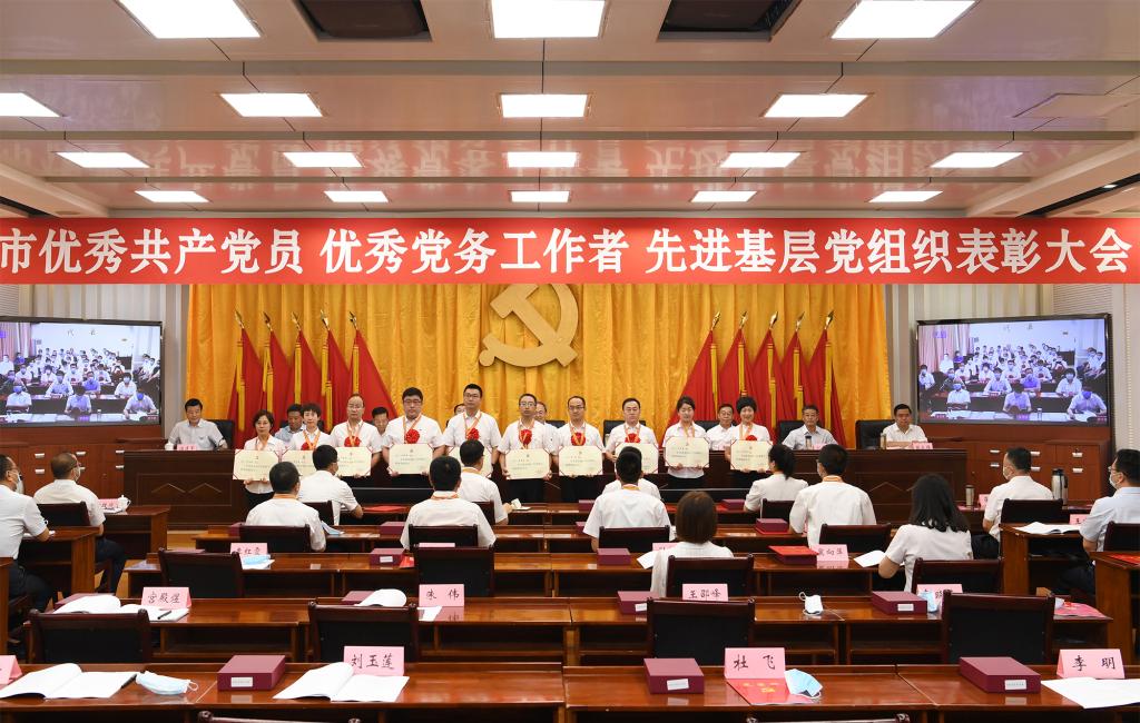 鄭連生講話。劉紀森 攝 上午8時30分,大會正式開始,全體起立,奏唱國歌。來自全市各行各業(yè)、在工作中取得優(yōu)異成績的99名共產(chǎn)黨員、100名黨務工作者和100個基層黨組織,分別被授予“全市優(yōu)秀共產(chǎn)黨員”“全市優(yōu)秀黨務工作者”“全市先進基層黨組織”榮譽稱號。受到表彰的優(yōu)秀個人和先進集體代表先后上臺領獎,會場響起熱烈掌聲。