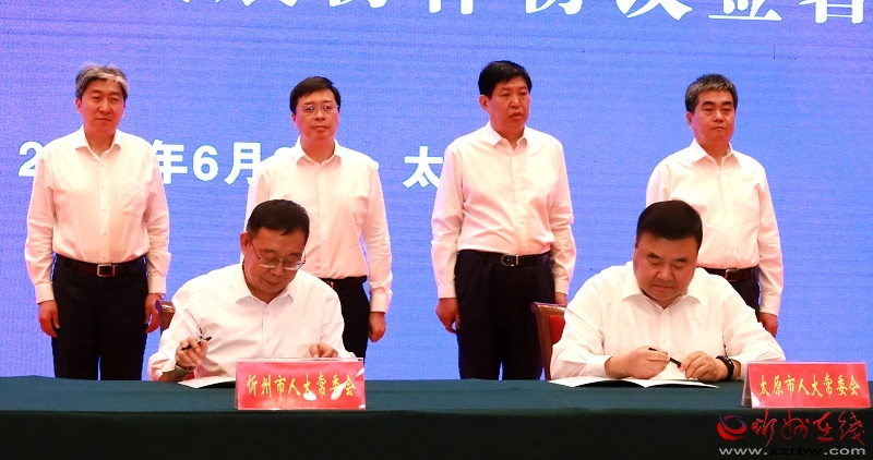 共同簽署協(xié)議。黃金龍攝 會前,太原、忻州兩市人大常委會共同簽署太忻經(jīng)濟一體化發(fā)展協(xié)作協(xié)議。 (責任編輯:梁艷) |