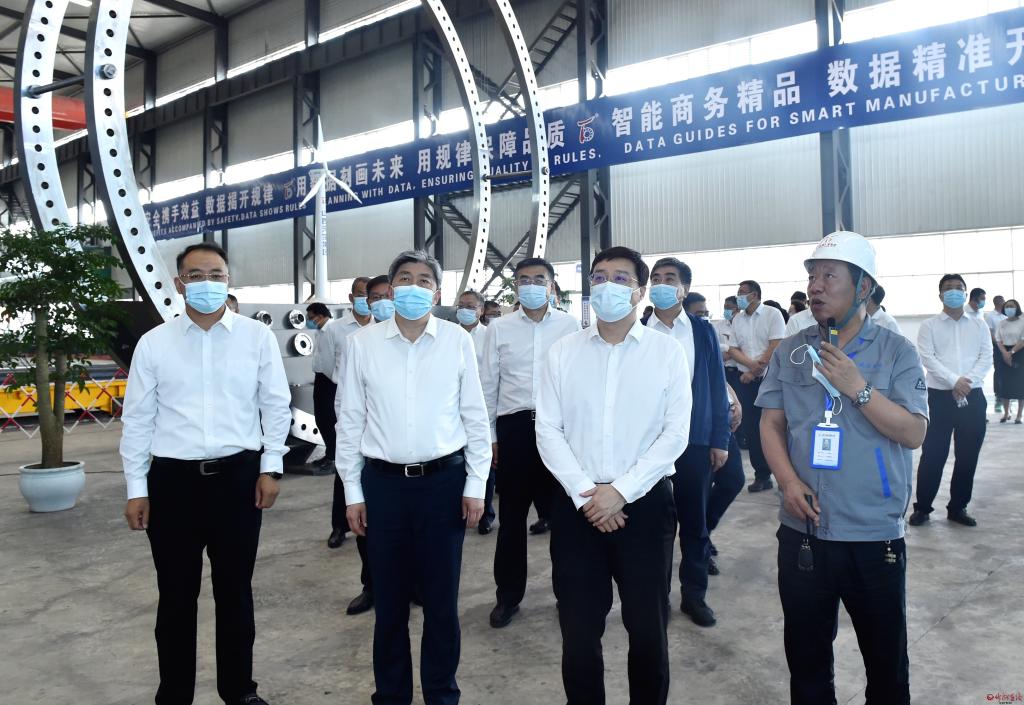 考察期間,韋韜帶領太原市黨政代表團一行來到中國雜糧之都文化展示中心,聽取忻州雜糧種植歷史文化介紹,了解農產品產銷情況,希望進一步拓展渠道、做大平臺,把更多特色產品引入省城、推向全國;在云沐溫泉度假酒店項目現(xiàn)場,察看休閑康養(yǎng)、旅游度假設施建設情況,就共同推動文旅產業(yè)發(fā)展進行深入交流;在北緯三十八度集成電路制造有限公司,觀摩芯片生產工藝及產品展示,希望共同推進產學研用一體化,實現(xiàn)創(chuàng)新鏈產業(yè)鏈深度融合;在山西天寶集團有限公司,考察基于5G+云平臺風力發(fā)電環(huán)鍛件智能制造擴建項目,希望依托龍頭企業(yè)、密切產業(yè)協(xié)作,共建風電裝備制造產業(yè)集群。