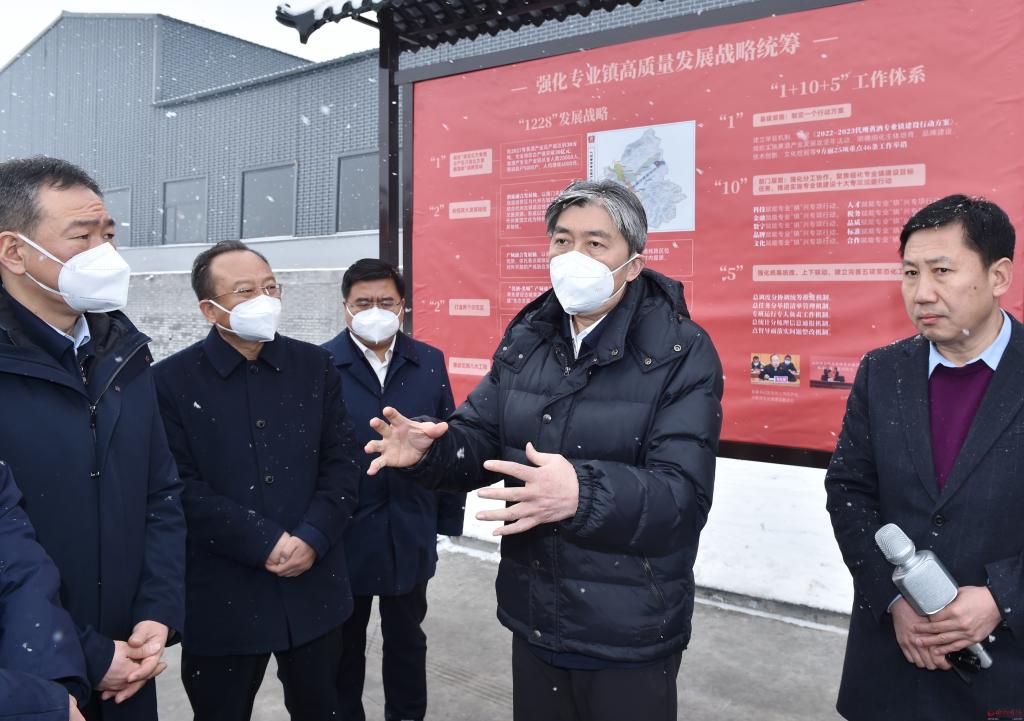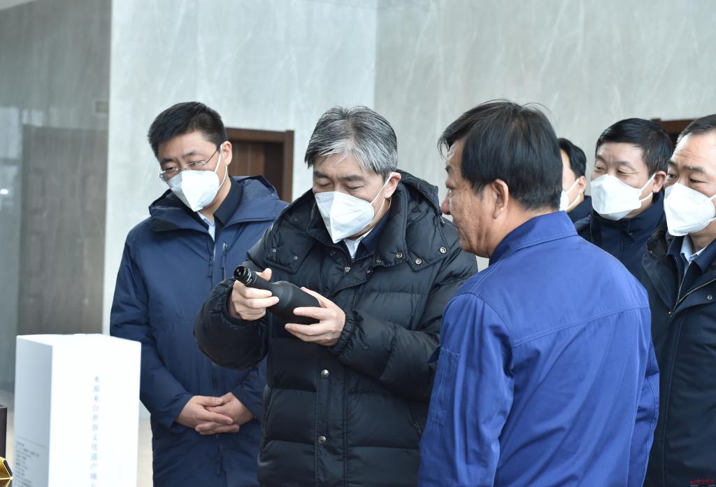在山西旭泰北方釀酒有限公司。馮曉磊 攝 代州黃酒作為忻州優(yōu)質(zhì)雜糧精加工產(chǎn)業(yè)的典型代表,如何真正把代州黃酒產(chǎn)業(yè)發(fā)展壯大,是事關(guān)全市發(fā)展的要事。在代縣的山西雁門關(guān)酒業(yè)有限公司、山西雁門王酒業(yè)有限公司和繁峙縣的山西旭泰北方釀酒有限公司等地,朱曉東進車間、看產(chǎn)品,結(jié)合展板了解企業(yè)規(guī)模、市場需求、發(fā)展?jié)摿Φ惹闆r。朱曉東指出,代州黃酒歷史悠久,產(chǎn)業(yè)基礎(chǔ)深厚。各級各相關(guān)部門要依托資源稟賦優(yōu)勢,加強統(tǒng)籌聯(lián)動,強化規(guī)劃引領(lǐng),完善工作機制,群策群力共同抓好代州黃酒專業(yè)鎮(zhèn)建設工作。企業(yè)要樹牢市場意識,精準把握消費者特點,在生產(chǎn)、加工、制造等環(huán)節(jié)精益求精,進一步提高產(chǎn)品規(guī)模、體量和品質(zhì),打造一流黃酒產(chǎn)品,重振代州黃酒千年雄風。 調(diào)研期間,朱曉東主持召開座談會,聽取定襄縣、代縣、繁峙縣加大特色專業(yè)鎮(zhèn)培育力度情況匯報和市直有關(guān)部門助力特色專業(yè)鎮(zhèn)建設情況匯報,與相關(guān)企業(yè)家代表面對面交流。他指出,忻州特色資源富集,特色農(nóng)產(chǎn)業(yè)、特色制造業(yè)品牌優(yōu)勢明顯,培育專業(yè)鎮(zhèn)具有得天獨厚的條件。大力培育專業(yè)鎮(zhèn),是我市貫徹落實省委省政府決策部署、推動高質(zhì)量發(fā)展的客觀需要,能夠更好發(fā)揮區(qū)域特色長板,更好促進縣域經(jīng)濟發(fā)展,更好推進市場主體倍增,更好保障人才培養(yǎng)、科技創(chuàng)新和成果轉(zhuǎn)化。各級各部門要深刻領(lǐng)會省委省政府戰(zhàn)略意圖,深刻認識打造專業(yè)鎮(zhèn)的重要性和緊迫性,把專業(yè)鎮(zhèn)建設作為全市推動經(jīng)濟高質(zhì)量發(fā)展的重要抓手,擺在轉(zhuǎn)型發(fā)展突出位置,全力支持專業(yè)鎮(zhèn)高質(zhì)量發(fā)展,以實際行動推動特色優(yōu)勢產(chǎn)業(yè)集群集聚發(fā)展。