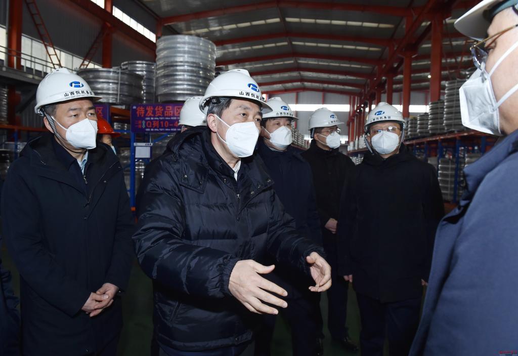 在山西恒躍集團有限公司。馮曉磊 攝 定襄法蘭特色專業(yè)鎮(zhèn)是我省首批打造的10個省級重點專業(yè)鎮(zhèn)之一。朱曉東先后來到山西恒躍集團有限公司、山西天寶集團有限公司,與企業(yè)負責人深入交談,聽取專業(yè)鎮(zhèn)建設規(guī)劃介紹,實地察看年產(chǎn)8萬噸高端精密鍛件智能制造綠色工廠項目和基于5G+云平臺風力發(fā)電環(huán)鍛件智能制造擴建項目情況。朱曉東勉勵企業(yè)要樹立大格局、大視野,強化資源整合,攥指成拳、抱團發(fā)展,不斷增強企業(yè)核心競爭力,共創(chuàng)共享發(fā)展成果。要吸引人才、留住人才、愛護人才,充分發(fā)揮人才效能,進一步做優(yōu)做大做強企業(yè)。他要求各相關(guān)部門要夯實責任,真抓實干,加大資金、政策等要素保障力度,為企業(yè)搭建更好的發(fā)展平臺,以務實舉措激發(fā)更多“專精特新”企業(yè)涌現(xiàn)。