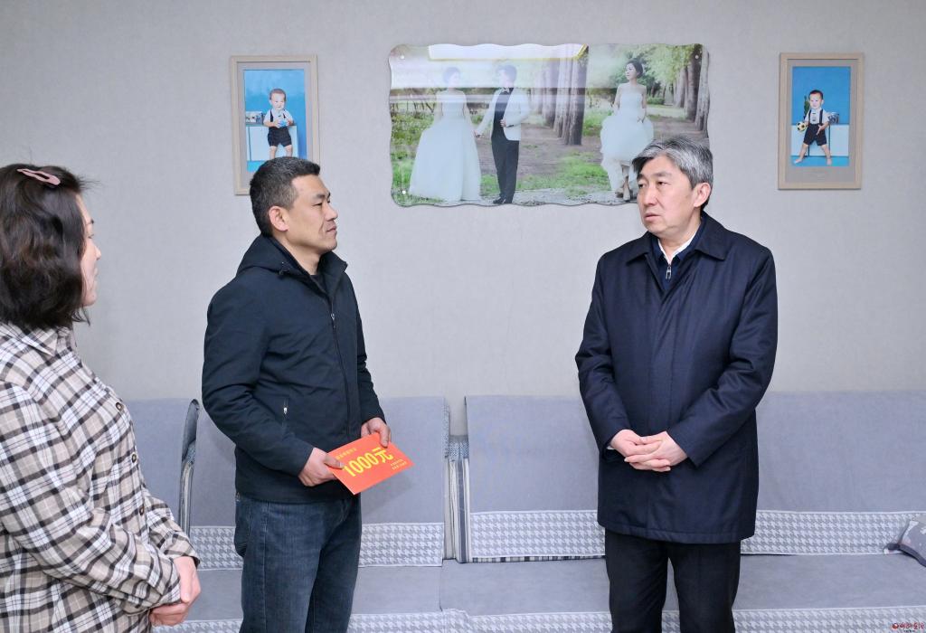 看望慰問困難職工劉志平。馮曉磊 攝 困難職工劉志平患有高血壓、糖尿病,家中還有患有腦梗的母親和正上小學的孩子,靠配偶照顧老人和孩子。朱曉東詳細了解了家庭收入、社會保障等政策落實情況,察看了居住狀況。他勉勵困難職工要保持樂觀心態(tài),增強生活信心,靠自己的積極努力和各項幫扶政策的落實,過上幸福生活。他希望有關部門多關心困難職工的生產(chǎn)生活,切實落實相關政策,采取有效措施,幫助解決實際問題,讓職工感受到黨和政府的關懷。