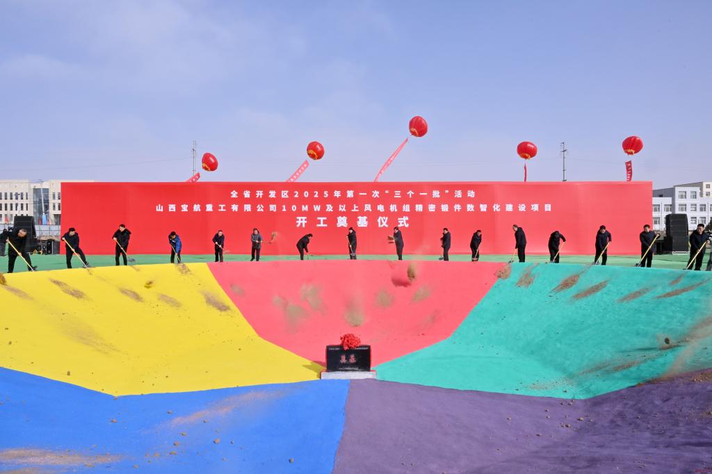 全省開發(fā)區(qū)2025年第一次“三個一批”活動山西寶航重工有限公司10MW及以上風(fēng)電機組精密鍛件數(shù)智化建設(shè)項目開工奠基儀式現(xiàn)場。馮曉磊 攝