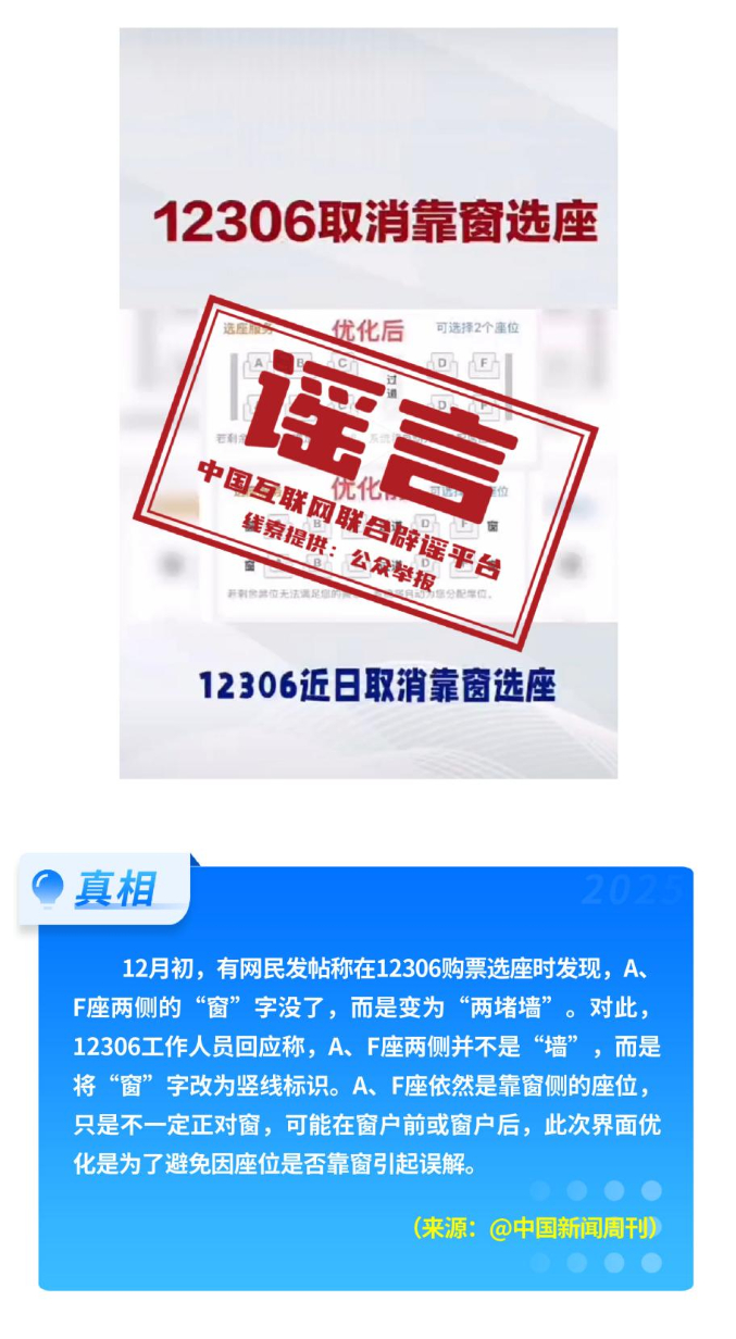 公共政策領域不實信息誤導公眾。2026年1月1日正式施行新修訂的《中華人民共和國治安管理處罰法》,網上出現“明年起向好友發(fā)送不雅照片、視頻違法”等誤讀;“一次性信用修復”政策有著嚴格的適用邊界,絕非“征信洗白”;火車高鐵“靠窗選座取消”實為12306購票界面優(yōu)化調整;“海南自由貿易港封關等于‘封島’”是對海南自由貿易港建設的整體性誤解。