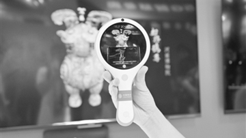 2021中國國際數(shù)字經(jīng)濟博覽會工作人員展示通過AR探索鏡掃描獲取文物相關(guān)信息 新華社記者 金皓原 攝