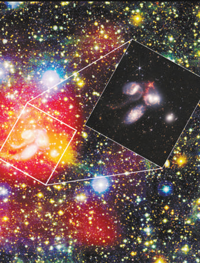 圖為“中國天眼”探測到的在致密星系群“斯蒂芬五重星系”周圍天區(qū)中的原子氣體分布。中科院國家天文臺供圖 核心閱讀 宇宙中所有天體的起源,都離不開原子氣體。近日,我科學家利用“中國天眼”發(fā)現了一個尺度約為200萬光年的原子氣體結構,是目前宇宙中探測到的最大的原子氣體結構。“中國天眼”也成為唯一一個能探測到如此稀薄氣體的望遠鏡。 利用“中國天眼”,由中國科學院國家天文臺研究員徐聰領導的國際團隊發(fā)現了一個尺度約為200萬光年的巨大原子氣體結構,位于著名致密星系群“斯蒂芬五重星系”,比銀河系大20倍,是迄今為止在宇宙中探測到的最大的原子氣體結構。10月19日,該成果在國際學術期刊《自然》雜志發(fā)表。 宇宙天體的起源離不開原子氣體 天體物理中非常重要的一項研究,就是觀測宇宙中的氣體。宇宙中所有天體的起源,都離不開原子氣體。例如,星系主要的演化過程就是不斷從宇宙空間吸收原子氣體,然后將其轉化為恒星。 團隊成員之一、中科院國家天文臺研究員程誠介紹:“我們看到的所有的天體,比如恒星,它們的源頭最終都會歸結到中性原子氫氣體?!?/p> 此外,研究氣體本身也非常重要。對此,程誠進一步解釋:“比如,有的恒星形成時,它不是來自原子氫,而是來自分子氫。那么,原子氫是怎么變成分子氫的?分子氫的密度為何會越來越高?還有,這些原子氫等重子物質是如何匯聚到星系的中心區(qū)域,然后漸漸形成恒星變成星系的?這些問題對于研究天體演化的各種階段都非常關鍵?!?/p> 通過射電天文波段,天文學家能夠對宇宙中的原子氣體進行直接觀測?!爸袊煅邸笔钱斀袷澜缈趶阶畲蟆㈧`敏度最高的單口徑射電望遠鏡,其所擁有的超高靈敏度,能夠探測到遠離星系中心的極其稀薄的彌散原子氣體所發(fā)出的暗弱輻射。 經過研究分析,科研團隊最終選中了著名致密星系群“斯蒂芬五重星系”進行觀測。自1877年被法國天文學家斯蒂芬發(fā)現后,“斯蒂芬五重星系”便是天文學領域最受關注的星系群,也成為韋布空間望遠鏡第一批觀測并首次向公眾展示的5個目標之一。 程誠說:“此前,也有其他國家的望遠鏡對這個星系群區(qū)域觀測過多次,但那些望遠鏡的靈敏度都不夠高,所以觀測結果都不理想。我們期望能夠突破以往的觀測極限?!?/p> “中國天眼”是唯一能探測到如此稀薄氣體的望遠鏡 宇宙中星系相互作用以及它們中間氣體的來源一直是天文學中的重要問題,“中國天眼”是研究這個問題的“利器”。 由徐聰領導的、以中科院南美天文研究中心為主的國際團隊包括了國內外一流的紅外和射電天文專家,他們都有豐富的多波段研究經驗。在“中國天眼”對國際天文界開放申請的第一季,該團隊便提交了觀測申請,并通過評審得到了觀測時間。 徐聰說:“我們的科學目標是將‘中國天眼’發(fā)揮到極致,探測到宇宙中最稀薄的氣體,研究星系中的氣體最遠來自宇宙中何處?!?/p> 在天文觀測中,出現噪聲在所難免。為了能夠達到觀測目標,“中國天眼”的調試人員不斷改進、提高“中國天眼”的靈敏度并壓制噪聲,終于在2021年10月將其靈敏度調試到極限,成功觀測到“斯蒂芬五重星系”周圍極稀薄的氣體。 程誠說:“前后觀測大概只用了一個月的時間,望遠鏡的總曝光時間是22小時。這個時間可以說是特別快,超出了我們的預期?!?/p> 在這次觀測中,“中國天眼”的接收機表現也特別出色。 “接收機接收信號時就有點像收音機調臺,我們要的中性氫的輻射就恰好在1.39GHz附近,我們就需要在這個頻段附近找信號。有些望遠鏡接收機的頻段范圍窄,但‘中國天眼’接收機接收信號的頻率覆蓋范圍很寬,效率就很高?!?/p> 讓科研團隊吃驚的是,這些氣體延展到了星系外200萬光年的地方,是有史以來天文觀測到的宇宙中最大的原子氣體結構,“中國天眼”也成為唯一一個能探測到如此稀薄氣體的望遠鏡。 對研究星系及其氣體在宇宙中的演化提出挑戰(zhàn) “中國天眼”的這項最新發(fā)現,揭示了在遠離該星系群中心的外圍空間,存在大尺度的低密度原子氣體結構。 徐聰說:“這些原子氣體結構的形成很可能與 ‘斯蒂芬五重星系’早期形成時星系間相互作用的歷史有關,可能已經存在了大約10億年?!?/p> 程誠告訴記者,此前也有觀測到過這類中性原子氫的彌散系統(tǒng),但都是一個星系附近有一個中性原子氫結構系統(tǒng),形狀像尾巴一樣。“我們原本的預期是希望利用中性原子氫的彌散分布情況來理解星系群并合的歷史。我們曾設想,也許有些中性氫是被甩出來到星系邊緣,但當我們看到在星系外圍有一個這么大的原子氣體結構時,我們便猜測,也許有一個星系的中性原子氫被徹底剝離出來了。”程誠說。 徐聰介紹,本次成果預示著宇宙中可能存在更多這樣大尺度的低密度原子氣體結構,“這項發(fā)現對研究星系及其氣體在宇宙中的演化提出了挑戰(zhàn),因為現有理論很難解釋為什么在如此漫長的時間里,這些稀薄的原子氣體仍沒有被宇宙空間中的紫外背景輻射電離。” “中國天眼”的運行,為研究宇宙中天體的起源打開了一個嶄新窗口,后續(xù)可以利用本次觀測結果,對紫外背景輻射電離進行更多探索。 《 人民日報 》( 2022年10月24日 14 版) (責任編輯:蔡文斌) |