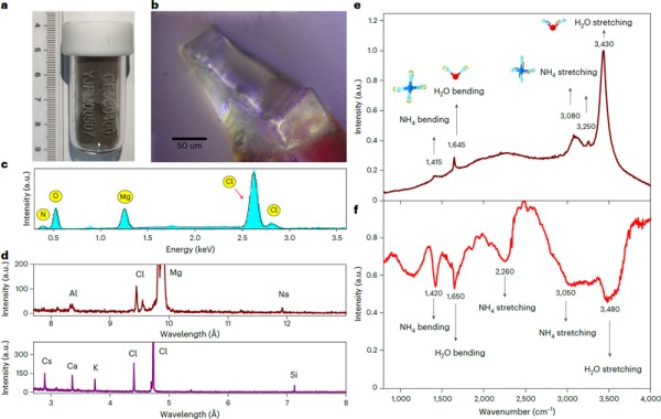 團(tuán)隊研究發(fā)現(xiàn),ULM-1的分子式中含有多達(dá)6個結(jié)晶水,水分子在樣品中的質(zhì)量比高達(dá)41%。從晶體的紅外光譜和拉曼光譜上,均可以清晰觀察到源于水分子和銨的特征振動峰。