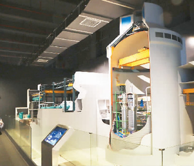 從模型結(jié)構(gòu)可以看到,“國和一號”外層被厚厚的混凝土層包裹?!斑@是屏蔽廠房,厚1.1米,兩層鋼板內(nèi)部填充高性能、高強(qiáng)度的混凝土,可抵御臺風(fēng)、海嘯來襲或是飛機(jī)撞擊?!眲⑿吕榻B。