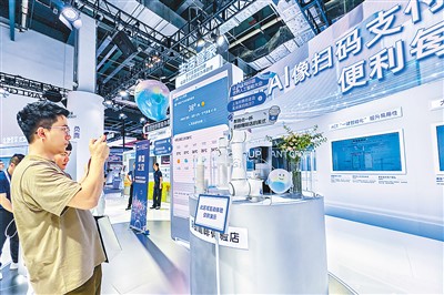 不斷發(fā)展的人工智能技術(shù),為支付機構(gòu)優(yōu)化服務(wù)提供了支撐。近日,在上海舉行的2024世界人工智能大會上,觀眾通過基于螞蟻百靈大模型的“支付寶智能助理”現(xiàn)場下單咖啡。王 初攝(人民視覺)