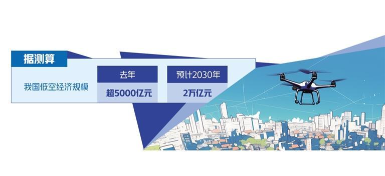 目前,以傳統(tǒng)通用航空和新型無人機產(chǎn)業(yè)為基礎(chǔ)的低空經(jīng)濟在我國正蓬勃發(fā)展。截至2023年底,我國通航企業(yè)達689家,通用機場451個。據(jù)測算,去年我國低空經(jīng)濟規(guī)模超5000億元,預計2030年有望達到2萬億元。