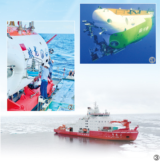 圖①:“奮斗者”號注水下潛。中國科學(xué)院深海科學(xué)與工程研究所供圖