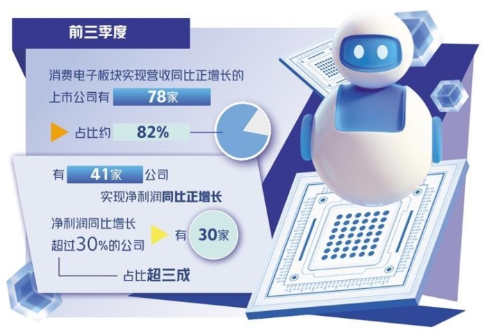 受益于AI等新技術的驅動,以及“以舊換新”等促消費政策的落地見效,今年以來,消費電子市場持續(xù)復蘇,帶動相關板塊上市公司業(yè)績回暖,交出企穩(wěn)向好的三季度答卷,一批上市公司前三季度實現(xiàn)營收、凈利雙提升。