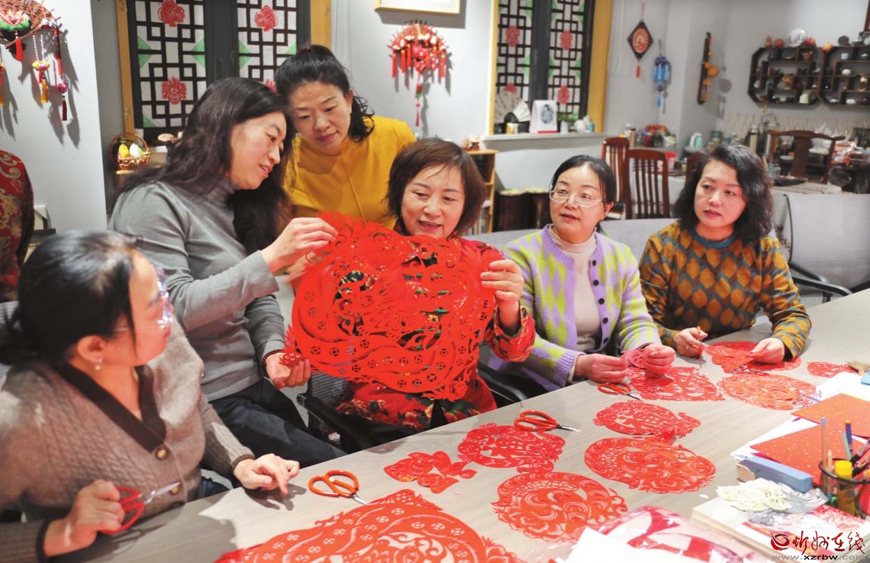 5年前,因?yàn)殚L時(shí)間手握剪刀,她患了腱鞘炎,右手拇指完全不能動(dòng)彈,手術(shù)后恢復(fù)了很久。“一方面知道應(yīng)該多加注意,另一方面畢竟年齡大了,又擔(dān)心什么時(shí)候想剪也真的剪不動(dòng)了,所以無比珍惜當(dāng)下還可以隨心所欲創(chuàng)作的機(jī)會(huì)。”看著眼前的作品,韋東梅說,每件作品完成后,腦子里想的就是下一件,她說,那些盤旋在腦子里的圖案就像自己的孩子一樣,個(gè)個(gè)可愛,熱切地期待著有人能把它們帶到這個(gè)世界來。