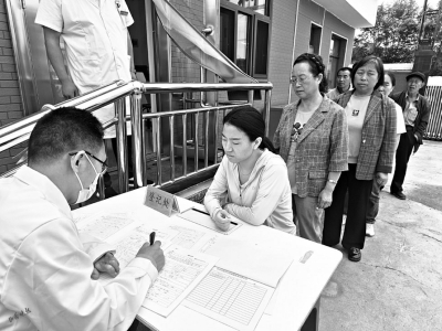 “有沒有基礎(chǔ)疾???”“有沒有過敏史?”“早上吃飯了沒?”……8月20日10時,在靜樂縣杜家村鎮(zhèn)中心衛(wèi)生院的門口,等著要體檢的村民們已經(jīng)排起了長隊(duì)。