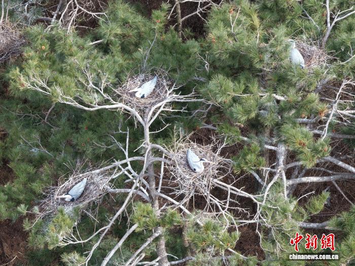 中新網(wǎng)呂梁3月30日電 (范麗芳 郝鵬飛)連日來(lái),中國(guó)各地氣溫回升。山西呂梁山腹地的方山縣積翠鎮(zhèn)劉家莊村,春風(fēng)拂過(guò)青山,草木吐露新芽,數(shù)十只蒼鷺如期遷徙歸巢,在村畔的高大楊樹(shù)上筑巢穩(wěn)窩,進(jìn)入孵蛋繁育期。