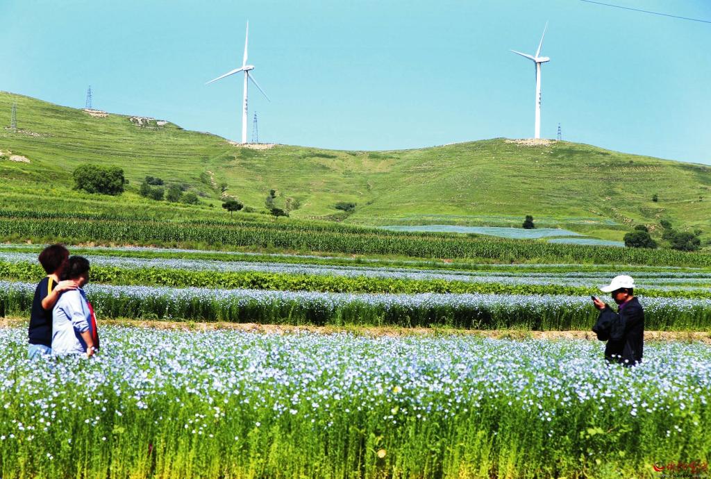 近年來,神池縣加大對胡麻種植戶的補貼力度,每畝補貼260元,在胡麻品質最優(yōu)的烈堡鄉(xiāng)種植1.6萬畝,打造了970畝有機旱作胡麻種植示范基地。每年6月下旬至7月下旬,烈堡鄉(xiāng)解家?guī)X到長城寨沿線的胡麻花盛開,藍色花海與沿線的長城交相輝映,組成一幅動人的美景畫。烈堡鄉(xiāng)鄉(xiāng)長趙崢嶸介紹,當?shù)卣谔剿鳜F(xiàn)代農業(yè)發(fā)展新路徑,通過“胡麻產業(yè)+旅游”的方式,吸引更多游客,使胡麻成為帶動鄉(xiāng)村振興的重要引擎。
