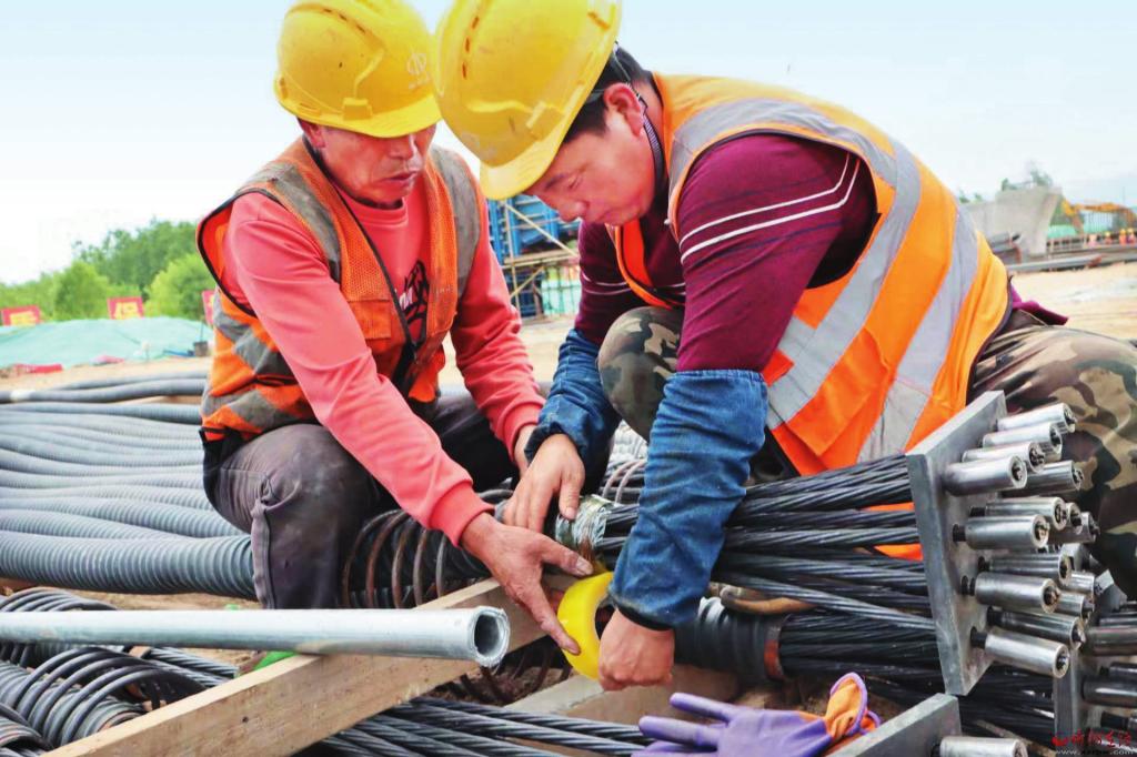 記者近日走進(jìn)南北通道菱形立交橋工地,只見密密匝匝的鋼筋林立如網(wǎng),奮戰(zhàn)在太忻大道一線的工人們頂烈日、冒酷暑、戰(zhàn)高溫,汗流浹背、干勁不減。技術(shù)員仔細(xì)檢查著每一個接口、鋼筋工熟練準(zhǔn)確排布每一組鋼筋結(jié)構(gòu),井然有序,規(guī)范自如。“南北通道菱形立交橋工程是項目中兩處混凝土澆筑工程之一,目前工程前期準(zhǔn)備工作已接近尾聲,全部澆筑工程任務(wù)將在9月10日前完成?!表椖恳魂犡?fù)責(zé)人尹耀軍自信滿滿。
