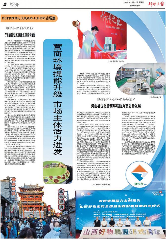 從黃河之畔到五臺山下,一些變化正在忻州大地悄然發(fā)生。2023年,我市從促進(jìn)經(jīng)營主體發(fā)展、大力優(yōu)化營商環(huán)境、加快建設(shè)高標(biāo)準(zhǔn)市場體系三個(gè)維度推動市場能級躍升,詮釋著貫徹黨的二十大精神開局之年的新作為、新風(fēng)貌,以“看不見的手”推動著忻州經(jīng)濟(jì)社會高質(zhì)量發(fā)展。