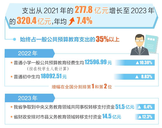 本報訊(記者任志霞)6月13日,記者從省財政廳獲悉,全省義務(wù)教育支出從2021年的277.8億元增長至2023年的320.4億元,年均增長7.4%,始終占一般公共預(yù)算教育支出的35%以上,義務(wù)教育優(yōu)質(zhì)均衡發(fā)展得到切實(shí)保障。