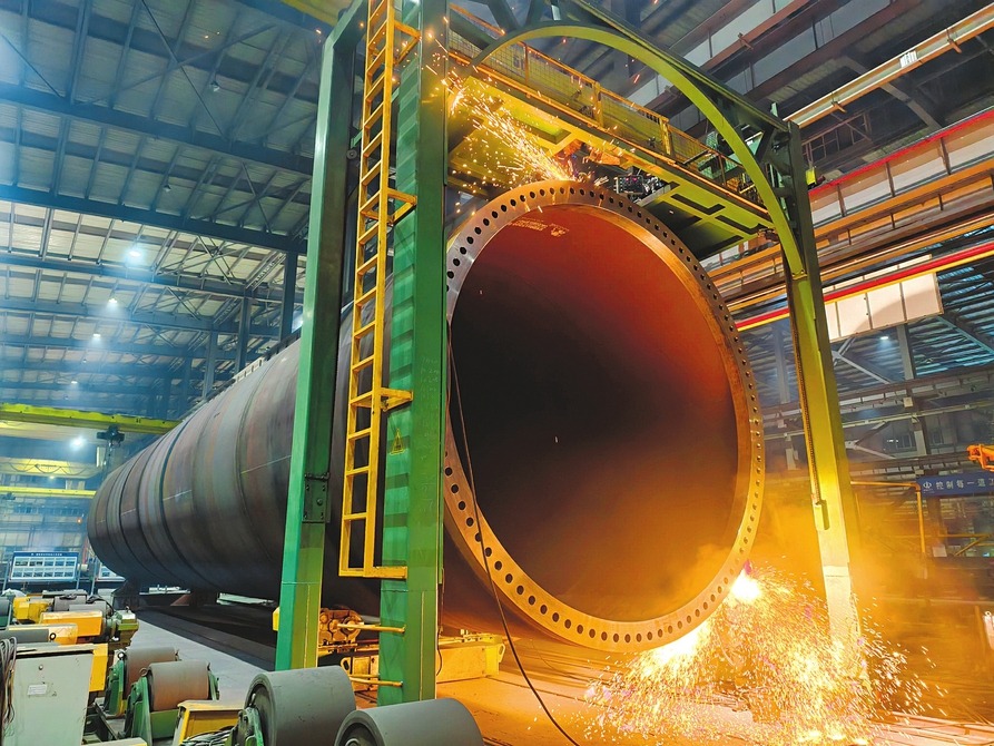 1月19日,在省級裝配式建筑產(chǎn)業(yè)鏈“鏈核”企業(yè)山西鋼構(gòu)科工有限公司智能制造車間內(nèi),一臺巨型壓力容器正進(jìn)行焊接作業(yè)。輥道與龍門架穩(wěn)穩(wěn)托舉著數(shù)十米長的鋼構(gòu)件,自動(dòng)化系統(tǒng)實(shí)時(shí)監(jiān)測焊縫質(zhì)量,全力保障昔陽、陽曲、廣靈、屯留等地風(fēng)電項(xiàng)目塔筒制作。 賈曉瑞 王宇攝