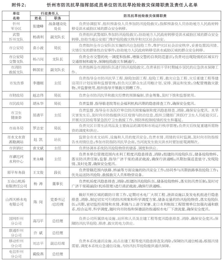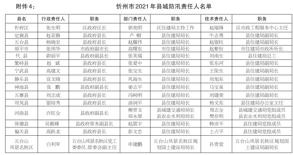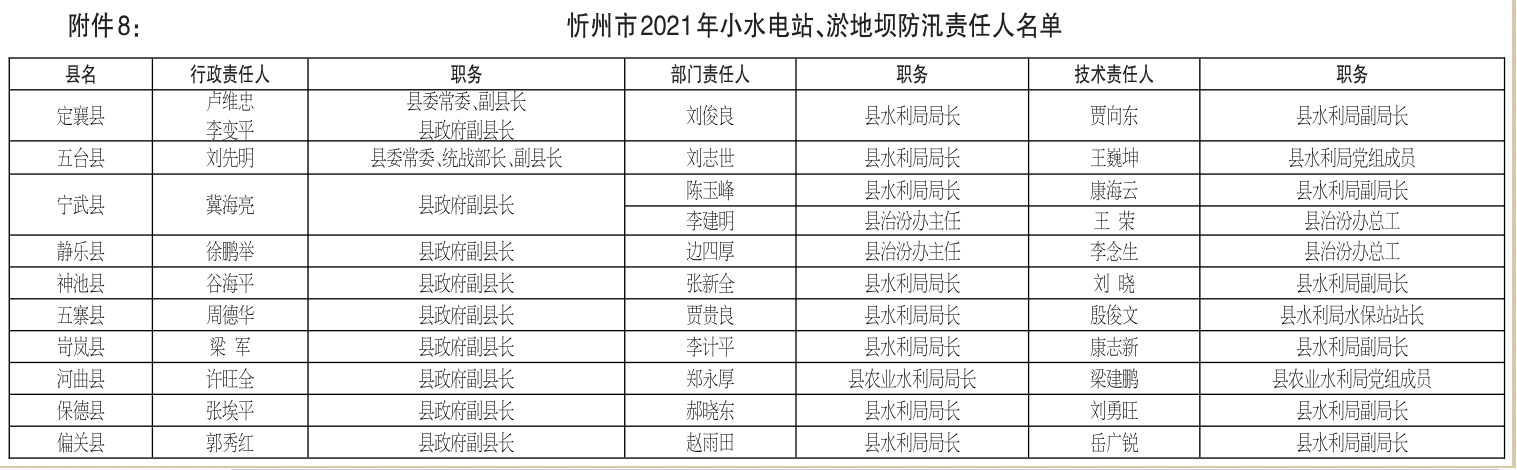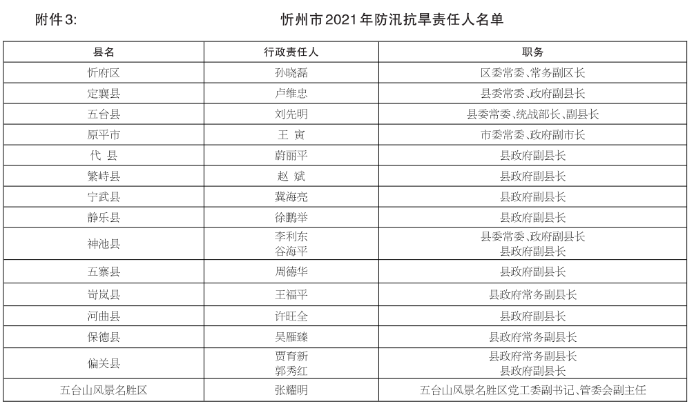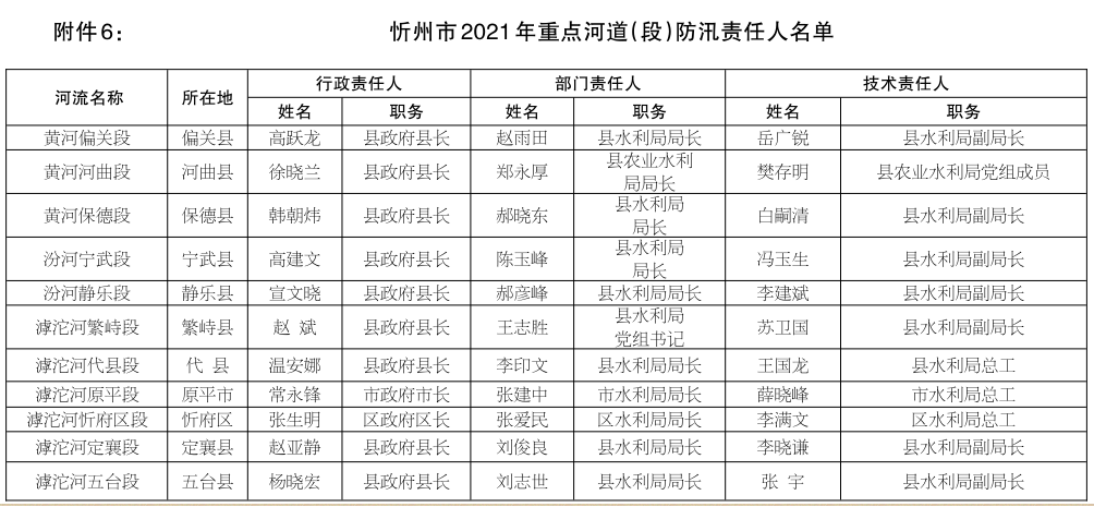 | 忻州市防汛抗旱指揮部關(guān)于2021年全市防洪重點(diǎn)和抗旱責(zé)任人名單的公示 |