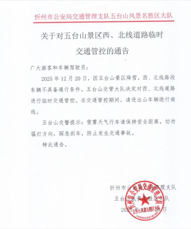 五臺山,交通管控!