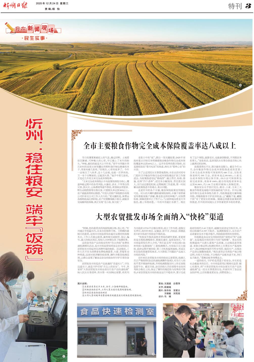 糧食安全關(guān)乎國計(jì)民生,稻谷、小麥、玉米三大糧食作物更是端穩(wěn)中國飯碗的底氣所在。忻州以糧食作物完全成本保險(xiǎn)為抓手,用政策溫度化解種糧風(fēng)險(xiǎn),用精準(zhǔn)服務(wù)守護(hù)農(nóng)田收益,讓“藏糧于地、藏糧于技”有了更堅(jiān)實(shí)的保障。隨著這項(xiàng)惠農(nóng)政策的持續(xù)推進(jìn),忻州的田間地頭正孕育著更多豐收的希望。