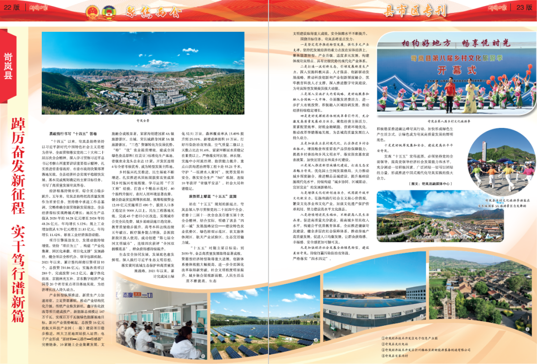 站在“十五五”規(guī)劃的新起點,岢嵐縣深入學(xué)習(xí)貫徹黨的二十屆四中全會、省委十二屆十一次全會及市委五屆十次全會精神,結(jié)合實際,明確了該縣“四區(qū)一城”發(fā)展戰(zhàn)略定位——建設(shè)特色農(nóng)業(yè)優(yōu)勢區(qū)、綠色轉(zhuǎn)型示范區(qū)、農(nóng)文旅體休閑區(qū)、航天產(chǎn)業(yè)試驗區(qū)、生態(tài)宜居魅力城。