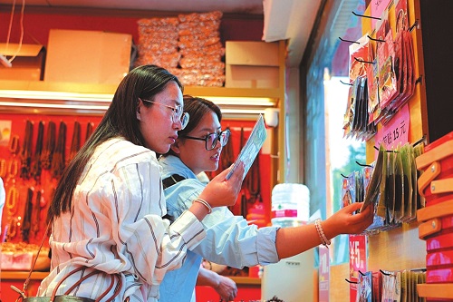 游客選購文創(chuàng)產(chǎn)品。史文勇攝