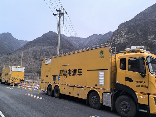 16時(shí)38分,保電隊(duì)伍準(zhǔn)時(shí)抵達(dá)作業(yè)現(xiàn)場(chǎng)。公路兩側(cè)是嶙峋的石灰?guī)r山體,一旁河灘碎石裸露、河水潺潺,春日的天空蒙著一層薄霧,料峭山風(fēng)帶著寒意撲面而來(lái)。3輛明黃色的中壓發(fā)電車(chē)(被大家親切稱(chēng)作“大黃蜂”)依次??吭诠愤叄?chē)身“應(yīng)急電源車(chē)”的字樣格外醒目,與蒼茫的山野形成鮮明對(duì)比?!案鹘M迅速就位,快速完成安全措施布置、電纜接入、設(shè)備調(diào)試等準(zhǔn)備工作,務(wù)必在天黑之前全部完成!”現(xiàn)場(chǎng)負(fù)責(zé)人的指令在山谷間清晰響起。