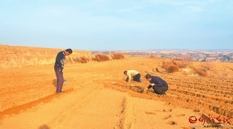 村民正在播撒蔥籽。