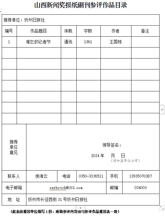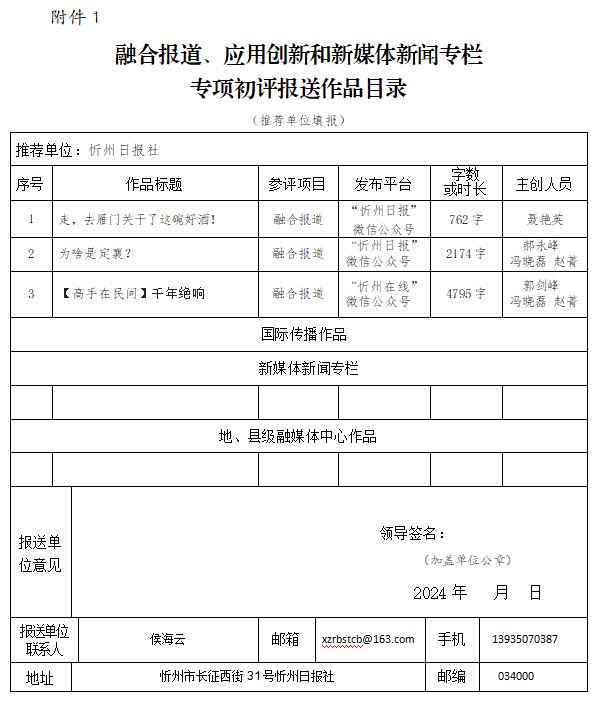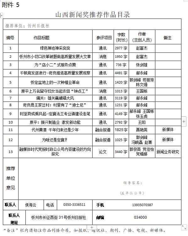 經(jīng)忻州日?qǐng)?bào)社編委會(huì)研究決定,以下作品擬推薦申評(píng)第33屆山西新聞獎(jiǎng),現(xiàn)予以公示。有反對(duì)意見者,請(qǐng)將反對(duì)意見書面報(bào)至統(tǒng)計(jì)考核部。