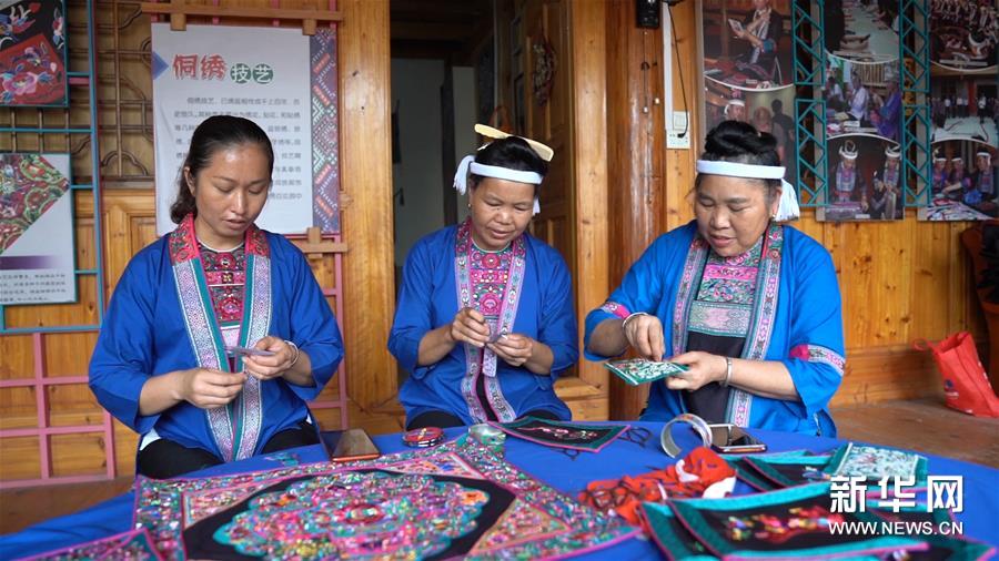 “最開始培訓繡娘的時候,沒有工資發(fā),只能在家打油茶招待人家,這幾年訂單多了,政府也支持,大家靠侗繡也能賺錢了?!睏钐鹫f,如今,一套侗族服飾甚至可以賣到七八千元;她們開發(fā)的耳釘、手工包等侗繡工藝品,很受香港等許多地方客人歡迎。