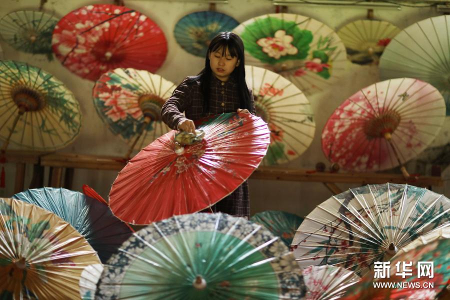 2019年6月,“赤水油紙傘制作技藝”被列入貴州省級非物質(zhì)文化遺產(chǎn)名錄。當(dāng)?shù)匾劳写笸沛?zhèn)的旅游產(chǎn)業(yè),采取政策引導(dǎo)、資金扶持等方式,鼓勵(lì)民間藝人重拾油紙傘制作技藝。油紙傘產(chǎn)品投放旅游市場,深受消費(fèi)者青睞。油紙傘制作不僅帶動(dòng)眾多群眾就業(yè)增收,也讓油紙傘技藝重新煥發(fā)生機(jī)。新華社發(fā)(王長育 攝)