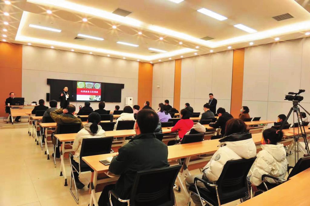 在講座現(xiàn)場,姚勤智從山西面食文化的歷史淵源說起,面食經(jīng)過歷史的傳承演變,在取材、做法、口味、品類、成因、食俗、營養(yǎng)價值等方面體現(xiàn)出顯著的地域文化特色,形成了別具一格的山西面食文化。他說,面食文化不單單是一個關(guān)于“吃”的文化,我們的祖先自古以來就把飲食文化同社會文化活動緊密結(jié)合起來,從而使面食文化具有多種社會價值——生存、禮儀、祭祀、享用等。